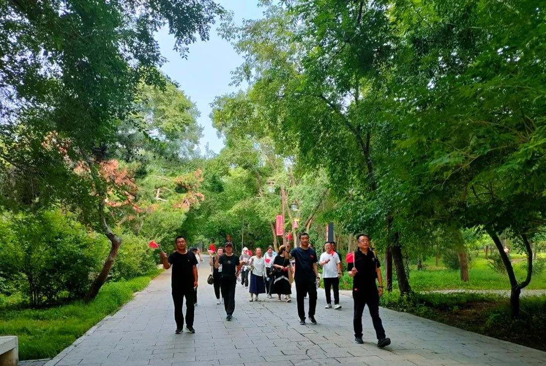 为了更好宣传低碳环保理念,营造浓郁的全民健身氛围,得到自我调节放松,提升身体素质和意志品质,活动最后,两个支部的党员在北陵公园开展了健步走活动。大家手持小党旗,按拟定路线出发,环北陵一起感受行走的力量,也为今后增添干事创业的激情和动力。